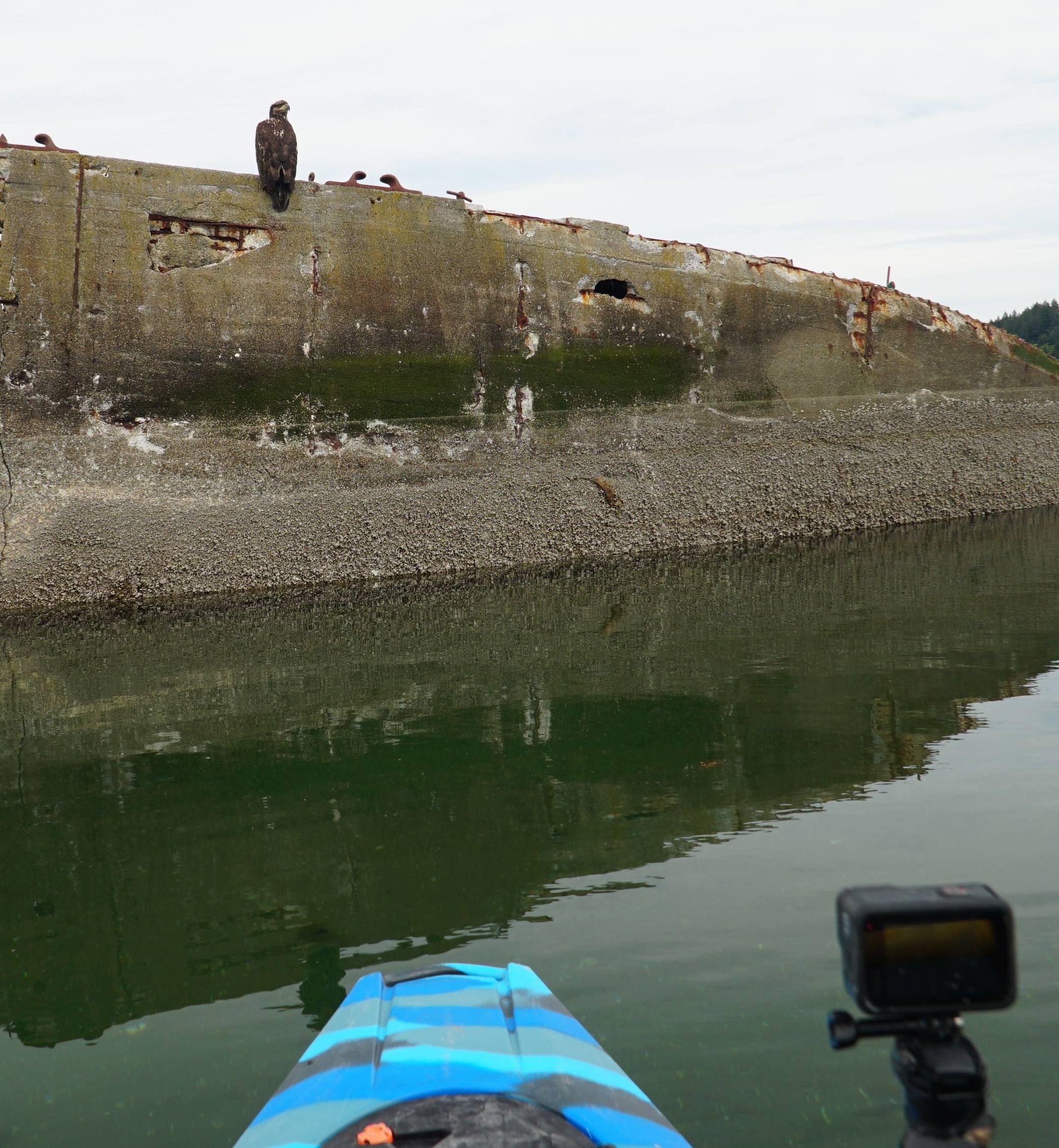 In mid-June, Brian and his partner Rob Crampton — who together run the nonprofit group EarthViews Conservation Society — launched this year’s venture in Boston Harbor near Olympia heading south and passing houses, boats, docks and other structures. The weather has been dry of late, Brian noted, but travel has been challenging because of tides and winds.